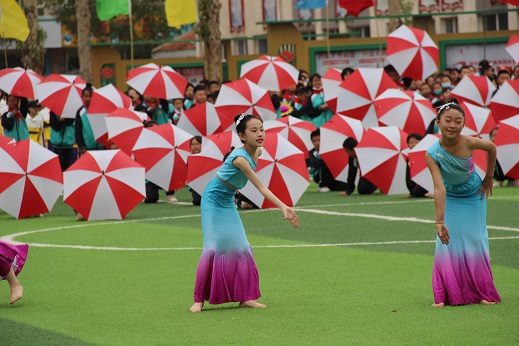本次活動在演出開始前,舉行了升旗儀式,接著,為一年級新少先隊員舉行了入隊儀式,由高年級少先隊員為新少先隊員佩戴好紅領巾,在輔導員閆錦霞老師的帶領下,新少先隊員們以飽滿的精神、響亮的聲音鄭重宣誓。隨后精彩的?藝演出開始,節(jié)目豐富多彩,課間操展演、民族大團結(jié)舞蹈、曳步舞等匯演的節(jié)目經(jīng)過細?的排練,精益求精,真正達到了“搭建?闊平臺,實現(xiàn)??參與”的目的,接著“雛鷹杯”四、五年級的足球決賽將整個活動拉向了高潮。同學們用童心演繹著快樂,用多姿多彩的節(jié)目傳遞著心中的喜悅,用別樣的方式慶祝著自己的節(jié)日。