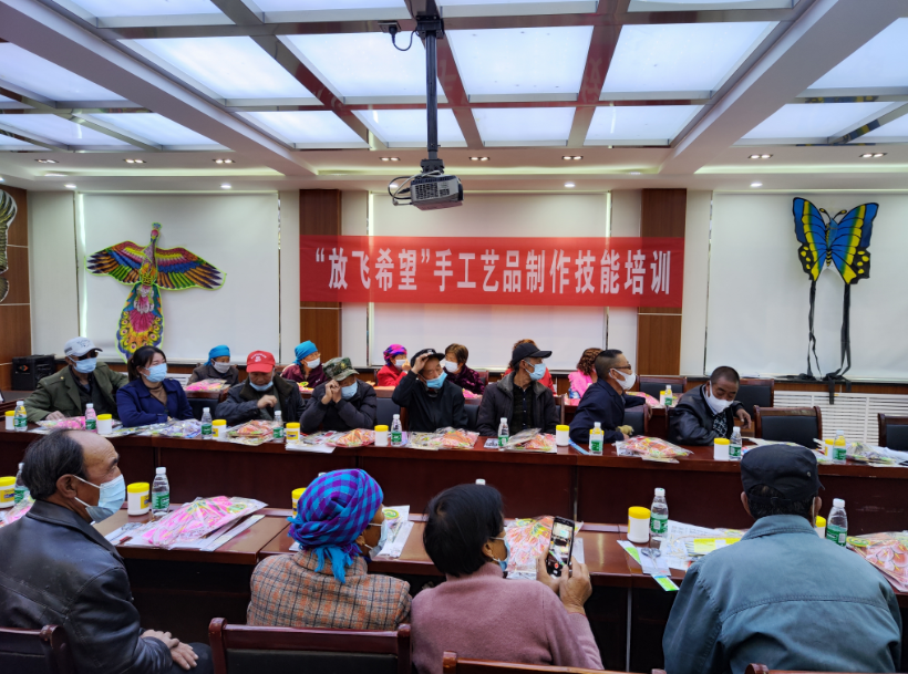 在5月15全國(guó)助殘日這一天,在饅頭營(yíng)鄉(xiāng)會(huì)議室,希望小鎮(zhèn)項(xiàng)目組聯(lián)合張北縣殘聯(lián)、張北縣殘疾人溫馨家園組織了30多名當(dāng)?shù)亓羰乩先?、殘疾人村民開展了“放飛希望 手工藝品制作技能培訓(xùn)”,本次培訓(xùn)一共分為4期,首次培訓(xùn)主要內(nèi)容為“風(fēng)箏制作”,重點(diǎn)針對(duì)傳統(tǒng)風(fēng)箏及娛樂風(fēng)箏制作工藝進(jìn)行培訓(xùn),培訓(xùn)現(xiàn)場(chǎng)邀請(qǐng)了中國(guó)航空學(xué)會(huì)專家、張北縣政協(xié)委員新聯(lián)會(huì)會(huì)員,剪紙、風(fēng)箏制作專家樹兒灣小學(xué)“蘭學(xué)淵老師”進(jìn)行了專業(yè)講解及培訓(xùn),確保每一位學(xué)員掌握風(fēng)箏的制作工藝。
